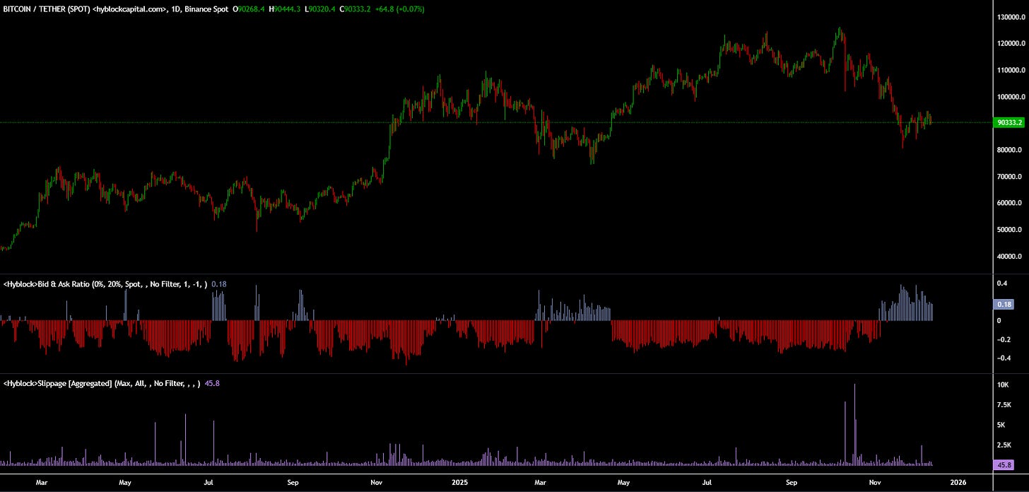 Across the broader range between 76,000 USD and 102,000 USD, downside liquidations outweigh upside by more than two-to-one. That imbalance gives market makers a clear incentive to push into long positions first, explaining why rallies continue to fade quickly.